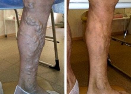 Las venas se han recuperado por completo. Período de tratamiento: 2 semanas.